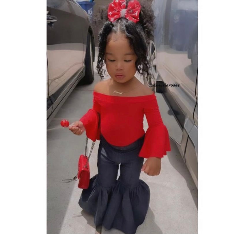 This beautiful off the shoulder leotard is handmade to perfection for your little fashionista. The bell sleeves are perfect for the Fall and Winter season. The current turnaround time is 7-10 business days (not including weekends or holidays) Since this is a handmade item there may be a slight difference in fabric placement to what is pictured. Please purchase the rush order listing if you need your order sooner than the standard turn around time.